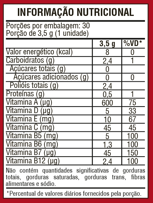 Aqui estão algumas de várias vitaminas presente em nossa Gominha